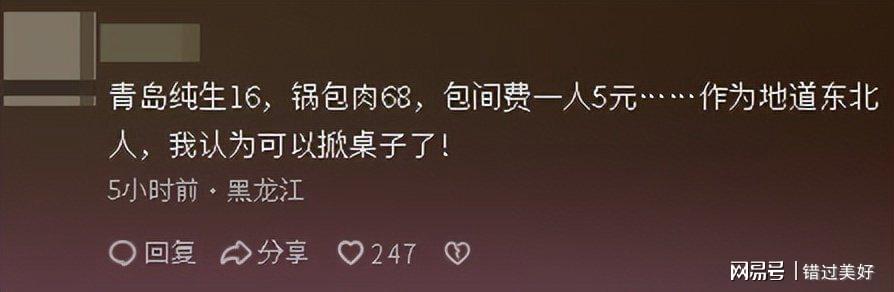 就连很多东北网友也被这家的价格吓了一跳,更是直言,在听到包间收费的那一刻起,就可以“掀桌子”走人了。