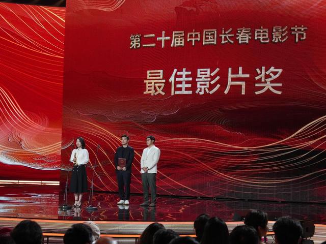 8月28日,在第二十届中国长春电影节闭幕式上,《南京照相馆》主创团队代表致辞。新华社记者 张楠 摄