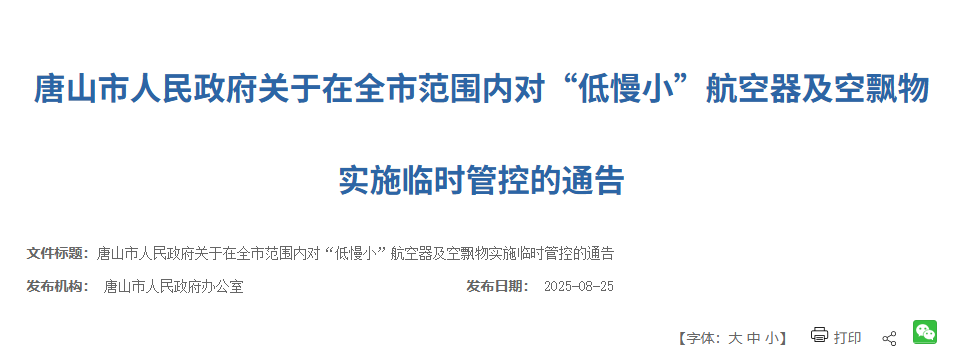 为了维护首都及我市行政区域内空中和公共安全,杜绝各类违法违规飞行活动发生,根据《中华人民共和国飞行基本规则》《通用航空飞行管制条例》《无人驾驶航空器飞行管理暂行条例》等有关法律法规和上级要求,结合我市实际,经市政府研究决定,对无人机等“低慢小”航空器及空飘物实施临时管控,现就有关事项通告如下。