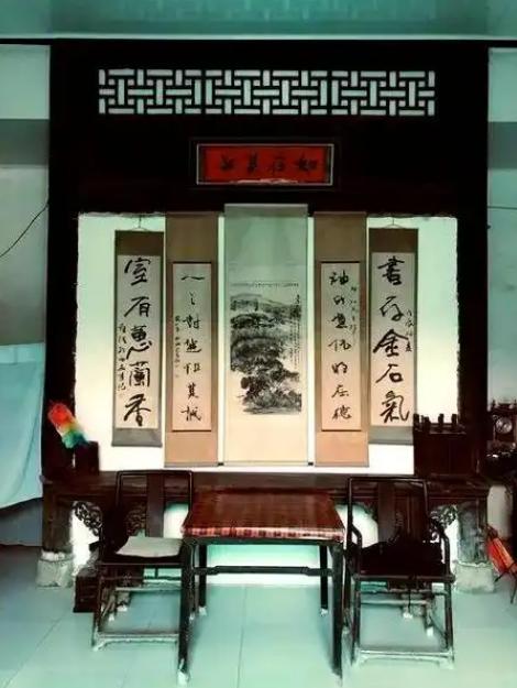 现在城市楼房一套套起来,客厅代替了中堂,条案变成了茶几,字画也换成了装饰画。