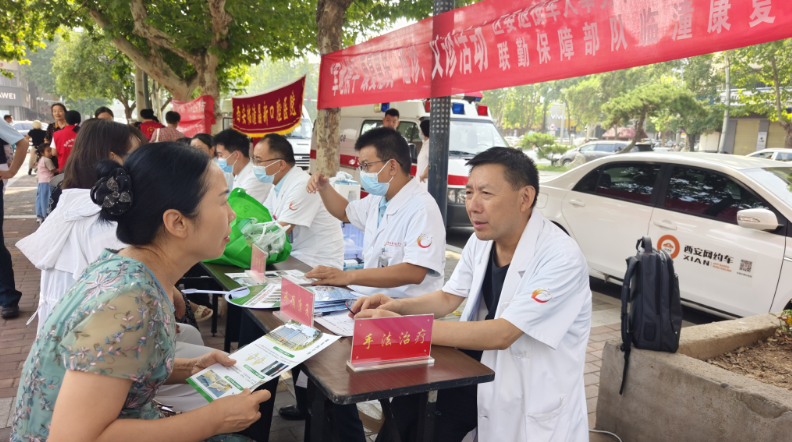活动现场,社区组织开展了便民集市、义诊、免费理发等活动。党员志愿者身着红色马甲,为居民提供政策咨询、活动引导等服务。“图书漂流瓶”旧书兑换现场,居民们可以将家中闲置旧书拿到社区咨询台,兑换抽纸、洗衣液等生活用品,物尽其用;义诊现场,主办方邀请联勤保障部队临潼康复疗养中心等医疗机构,为居民提供量血压、测血糖、颈椎按摩及口腔、耳道、视力检查等健康服务,并普及医学健康知识,受到居民们热烈欢迎。