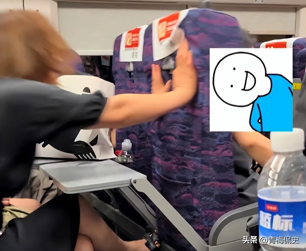 当时一名女子乘坐高铁,由于前排乘客座椅压到了她的袋子,后排女子对着前座狂踹。