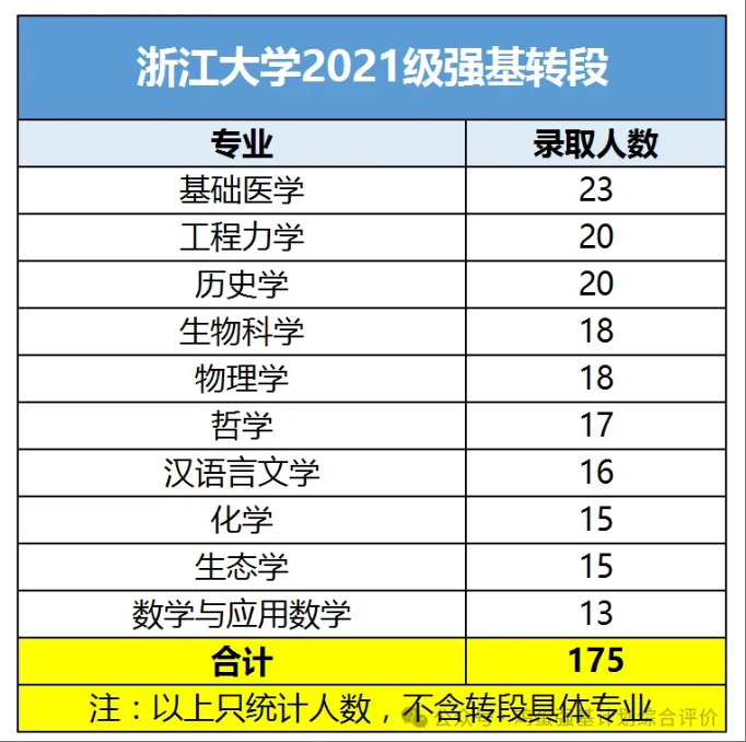1.浙江大学:2021级转段约175人(实际录取人数、期间退出、补录人数,未知),转段率超 83%;