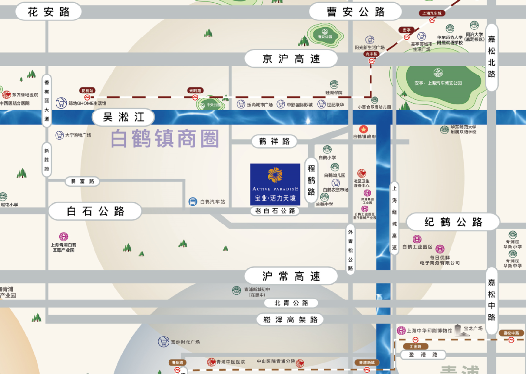 售楼处热线:400-833-2771【电话】(温馨提示:本项目参观样板间采取预约制,为了不耽误您的行程,过来参观请提前来电进行预约看房或咨询项目详情)项目区位配套长三角一体化“几何中心”上海2035规划中提到,上海要成为具有全球影响力的长三角城市群的核心城市,基本建成“中心辐射、两翼齐飞,新城发力、南北转型”的空间新格局。从战略空间看,青浦处于中国国际进口博览会、虹桥国际开放枢纽、长三角生态绿色一体化发展示范区的战略叠加区。泛长三角区域“几何中心”白鹤镇作为长三角一体化先行示范区、“安花白”节点型城市,将借助区位优势,承接安亭“世界级汽车产业中心”的部分功能。
