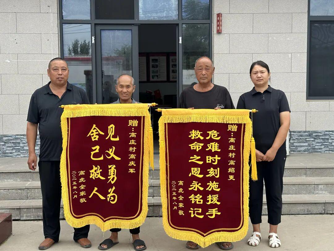 “两位老人年龄这么大了,不顾自身安危救下我的孩子,真是太感谢了,说什么都难以表达我的感激之情。”8月26日,官亭镇高家庄村村民王女士为该村高庆军、高绍更两位老人献上锦旗,感谢两位七旬老人在危急时刻挺身而出,从水渠中救起自己落水的6岁儿子小明(化名)。