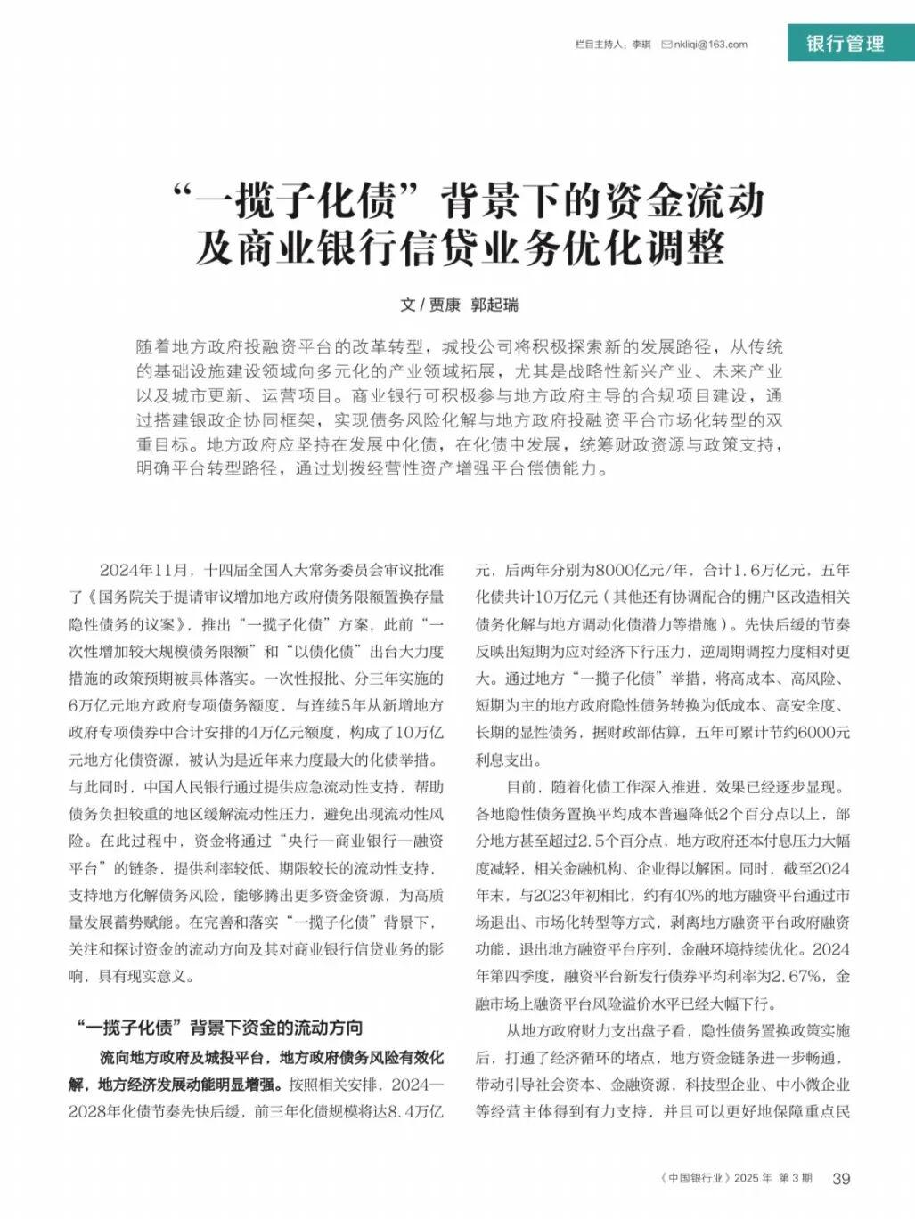 (本文发表于《中国银行业》杂志2025年第3期。)
