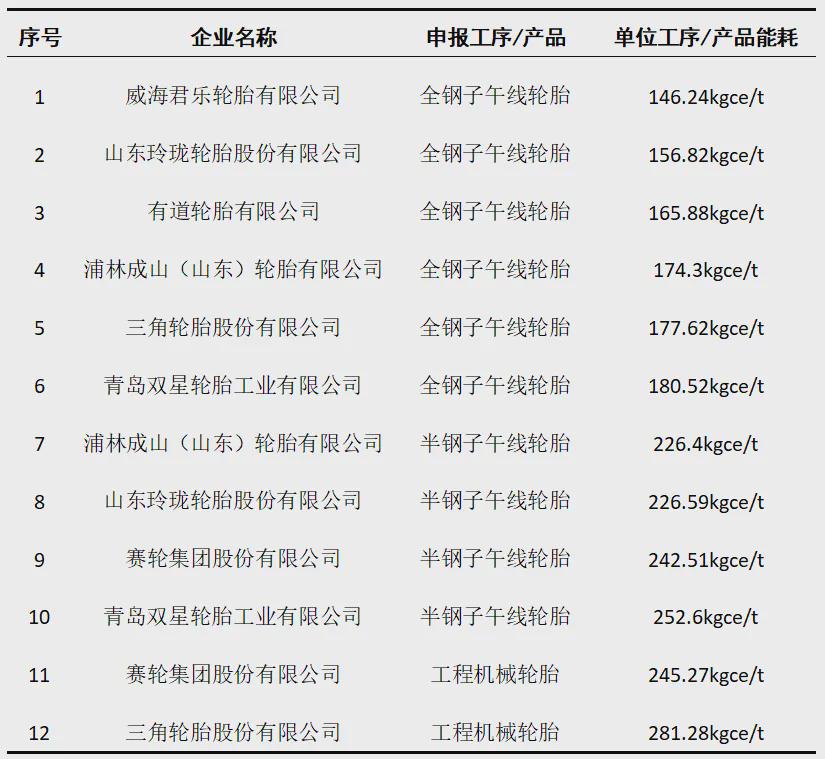 近日,山东省工信厅联合省发改委、市场监管局公示2025年度省级能效“领跑者”遴选结果,公示时间为8月19—25日。名单共覆盖10个行业,24家企业的30项工序或产品,其中子午线轮胎行业7家企业共12项产品入选,名单如下。