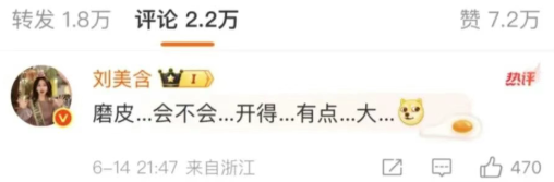 底下刘美含给他评论的“磨皮是不是开的有点大”刚刚好就是十个字。