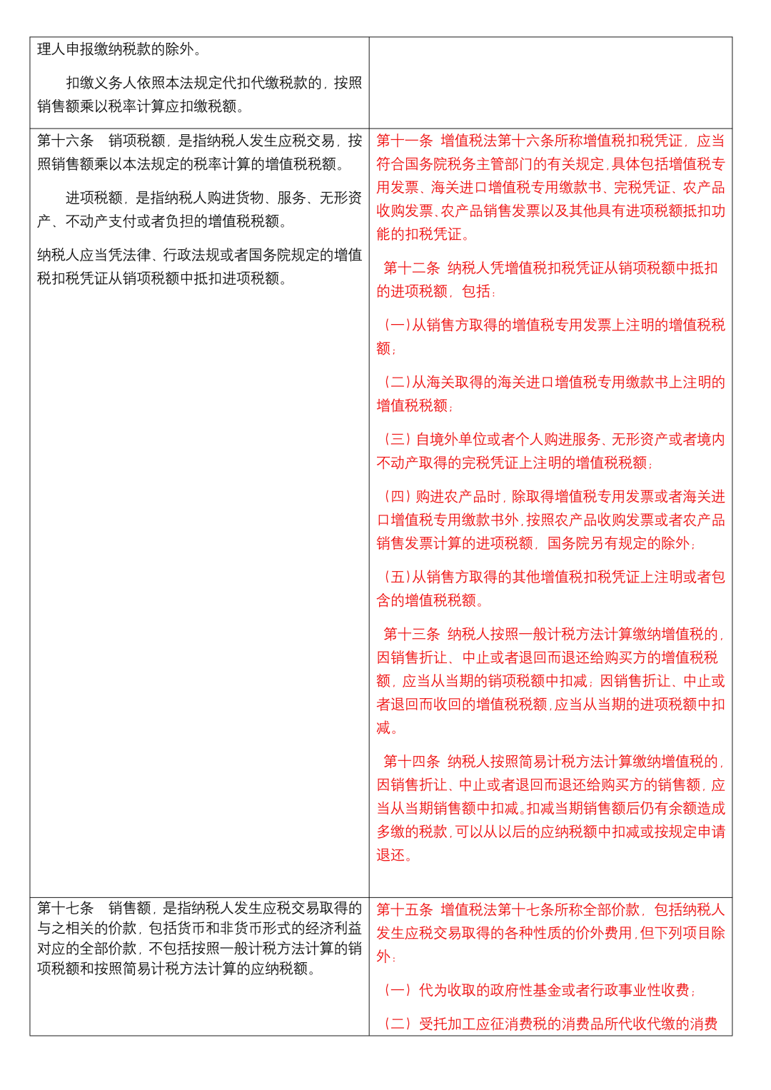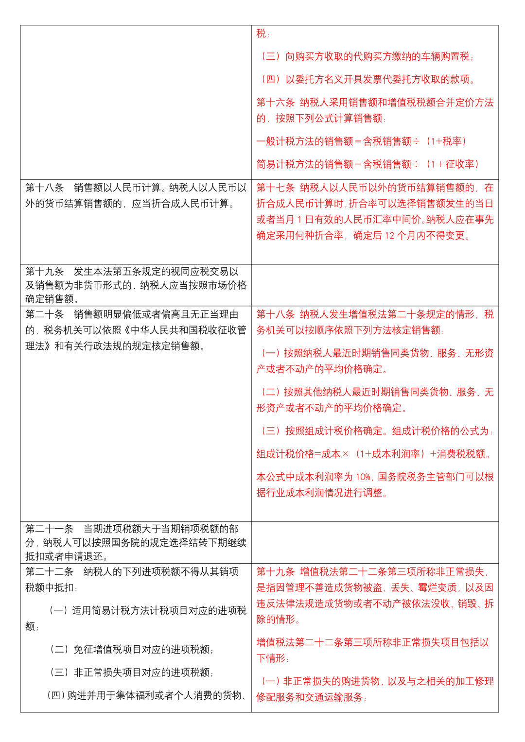 《增值税法》与《增值税法实施条例(征求意见稿)》对照表