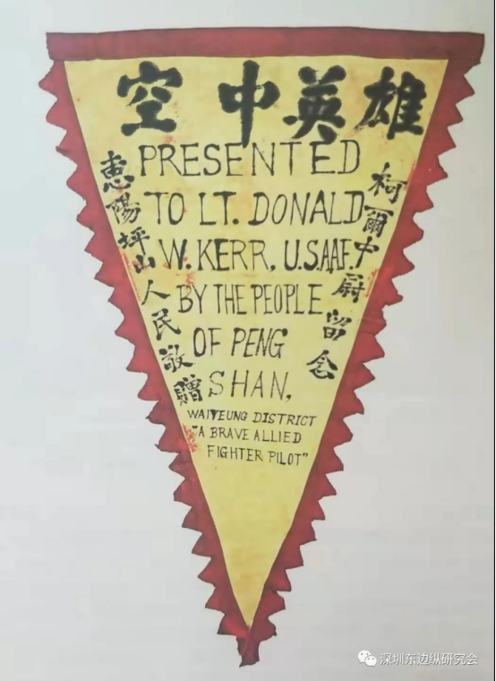 “空中英雄”、“柯尔(即克尔)中尉留念”、“惠阳坪山人民敬赠”以及对应英文。
