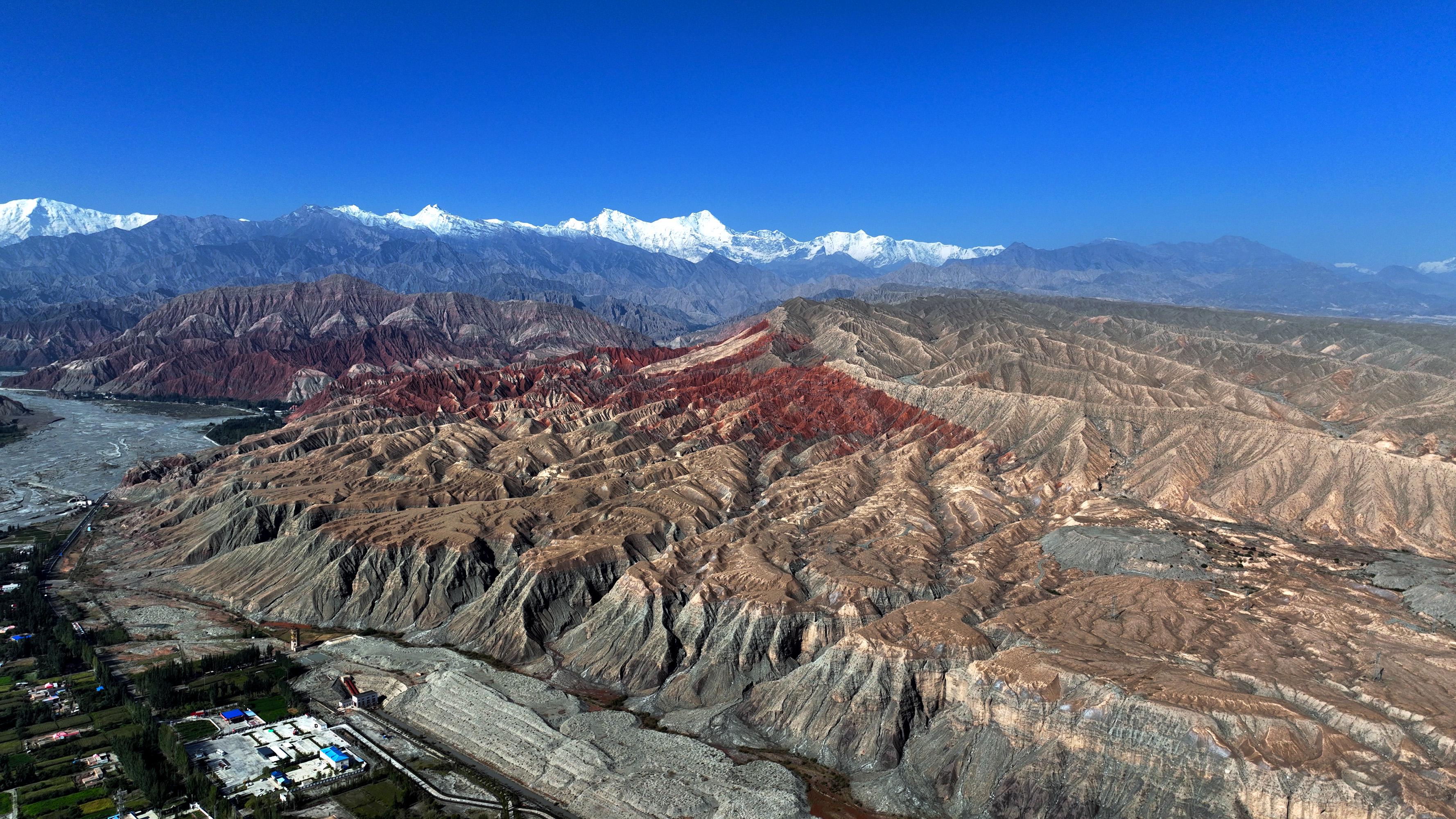 新疆的壮美山川令人震撼,蜿蜒灵动的河流与色彩斑斓的大地相互映衬,构成一幅幅动人的自然画卷。