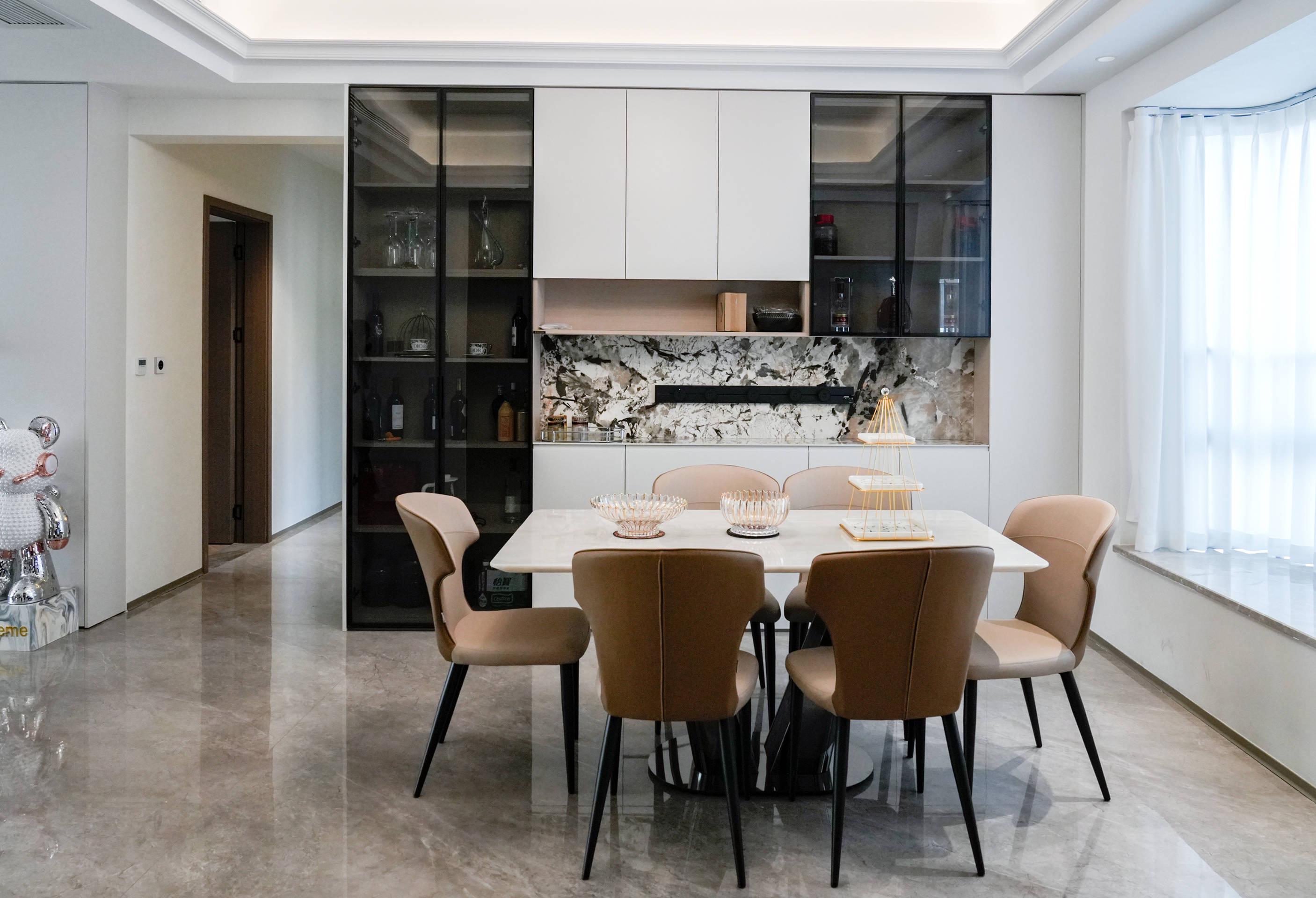 定制餐边柜时,一定要根据自己家的空间尺寸来设计。测量好餐厅的宽度、高度和深度,确保餐边柜能够完美地嵌入其中,不会浪费一点空间。同时,还要考虑到与餐厅其他家具的风格和颜色相协调,让整个空间看起来更加和谐统一。