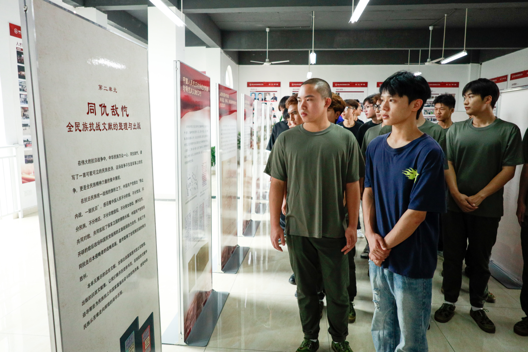 ▲9月4日,四川文化传媒职业学院联合绵竹市图书馆在学校绵竹校区举办“让历史说话,用史实发言”抗战文献整理成果展,各基层党组织代表、新生代表参加活动。