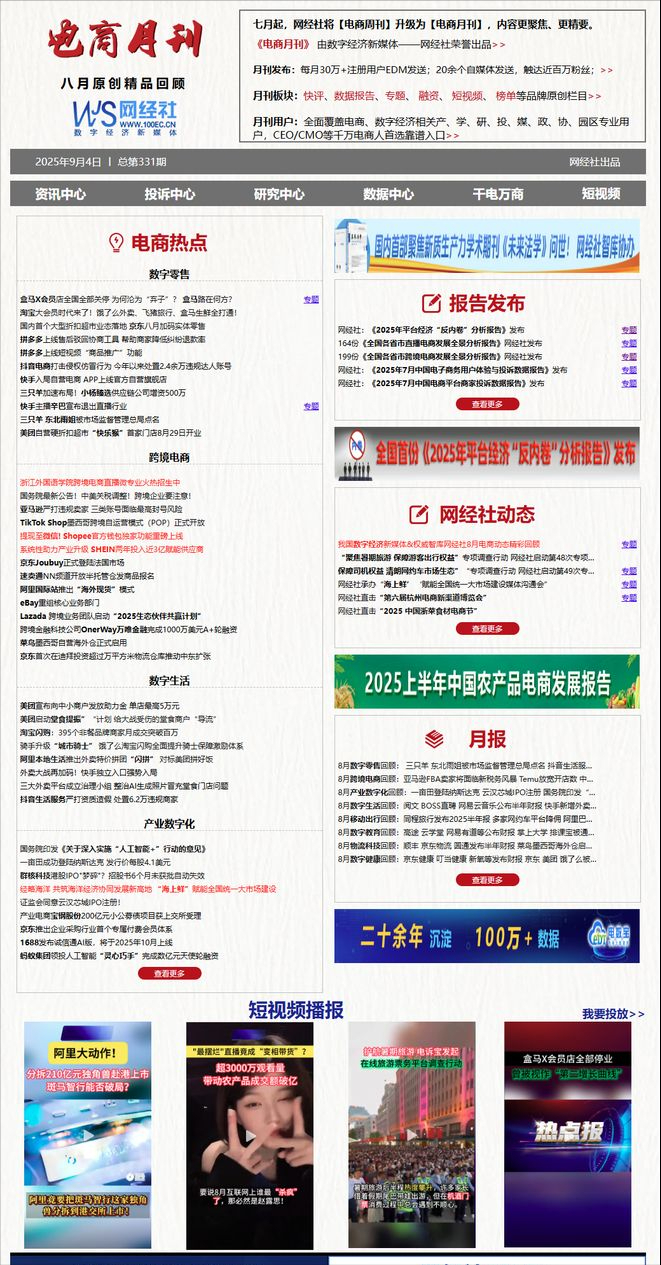 8月,网经社围绕以电商为核心、涉及移动出行、数字健康、数字教育、物流科技等多个数字经济相关赛道,在独家策划、报告发布、行业交流、会议活动等多个方面继续展现了其作为数字经济新媒体以及权威智库的活跃角色。