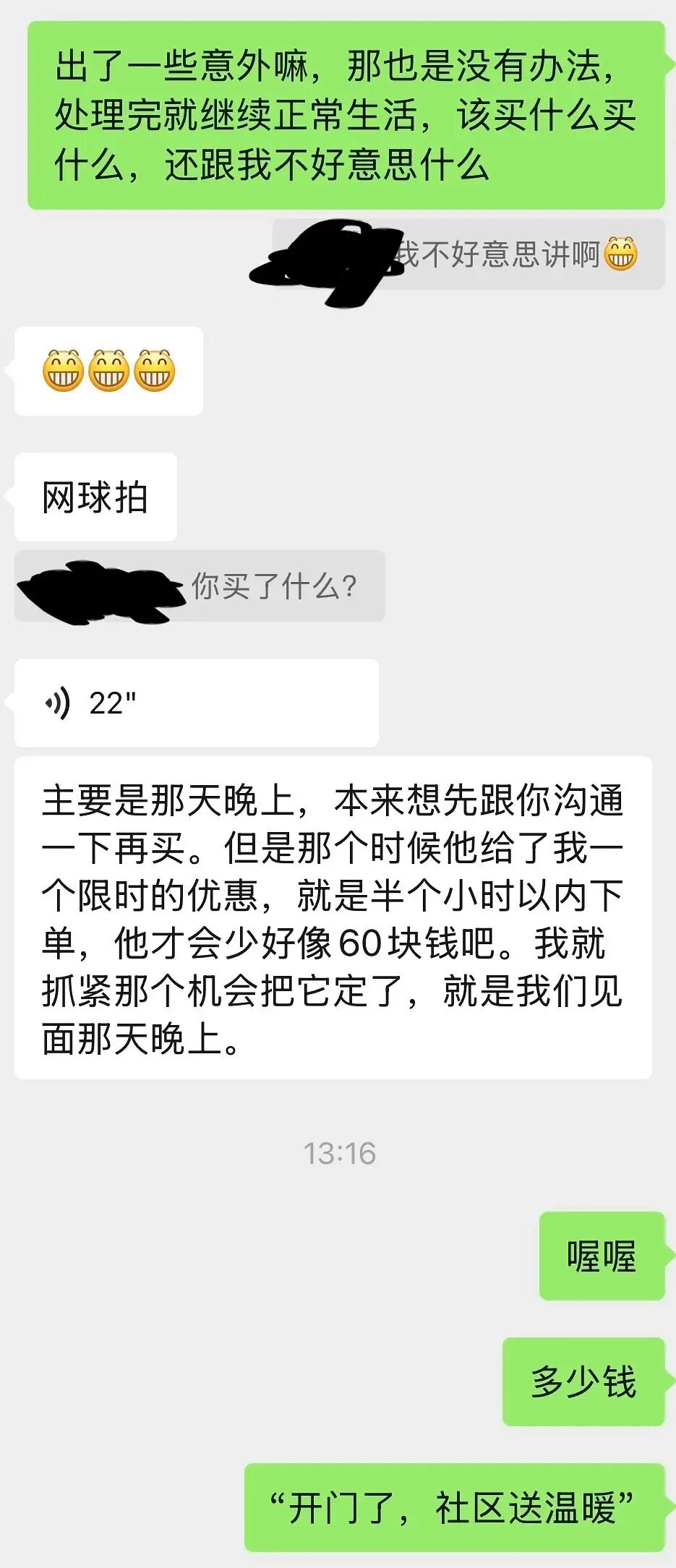 我想着要给他回礼,就问是什么东西,多少钱,他扭扭捏捏没有正面回答,过了一会儿发给我一张付款截图。