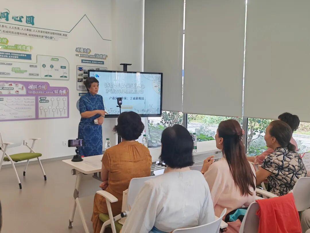 丁迪蒙介绍,上海话不仅是日常生活语言,更是承载古汉语音韵的“活化石”。“用沪语读诗,不仅能让居民感受到抑扬顿挫的韵律节奏和语音交错的艺术美感,更是对传统文化的一种重新发现。短小易背诵的古诗词也能让居民加强记忆,动脑入心。”她强调,这样的活动不仅有助于保护方言多样性,也增强了沪语的文化自信,“吴语完全可以登大雅之堂”。