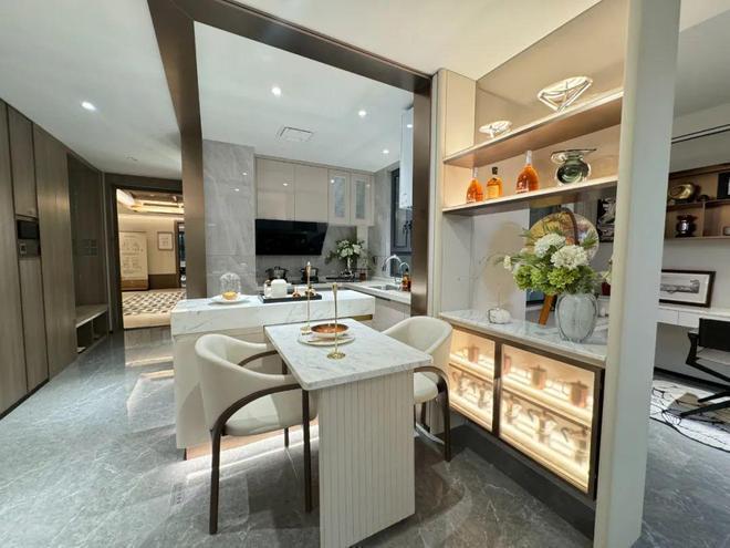 - 厨房、餐厅、客厅采用LDK一体化布局,中建·虹悦里售楼处电话☎:400-822-5005【预约☎】让空间在视觉上无限延伸。
