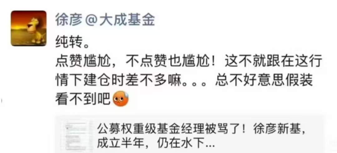 因为近日的一张朋友圈截图,我被大成基金徐彦圈粉了。