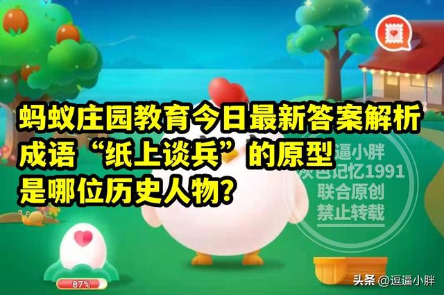 蚂蚁庄园教育:成语“纸上谈兵”的原型是哪位历史人物?
