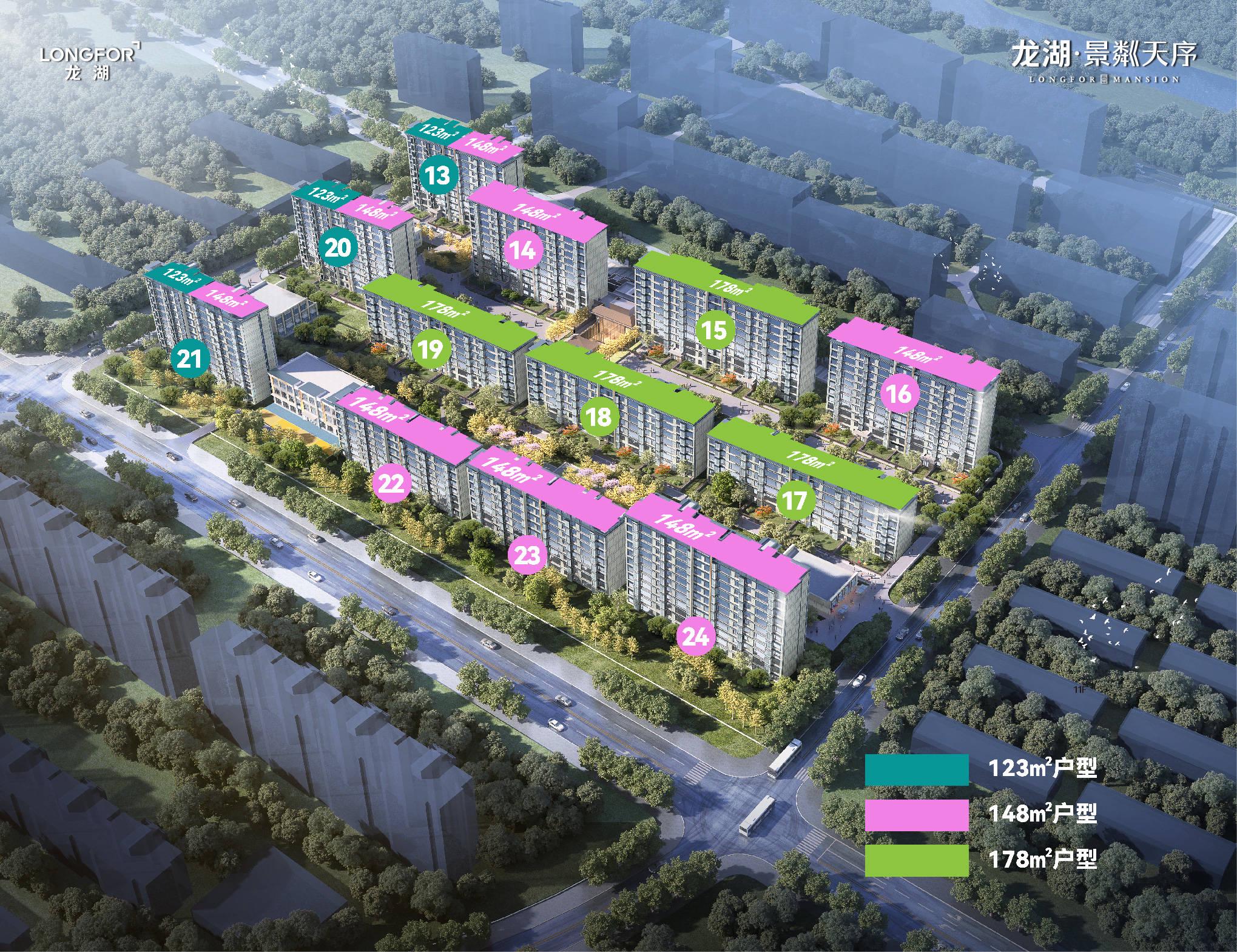 占地面积约47245㎡,建筑面积约93304㎡,容积率1.54,12栋全洋房布局,产品面积段123㎡/148㎡/178㎡,每户臻享大尺度景观视野。