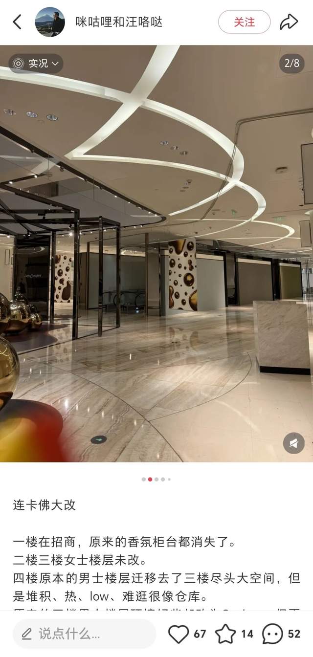 其实,早在成都闭店传闻出现之前,就已有网友在小红书等社交平台发帖称,上海连卡佛门店正在进行内部调整,据发帖内容显示:一楼原有的美妆品牌“消失”了,四楼的男士楼层迁移去了三楼,四楼则改为了奥特莱斯。