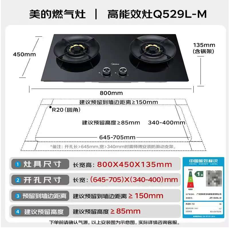 一级能效(热效率≥63%):华帝70%、方太65%,燃烧充分不费气,减少厨房废气;
