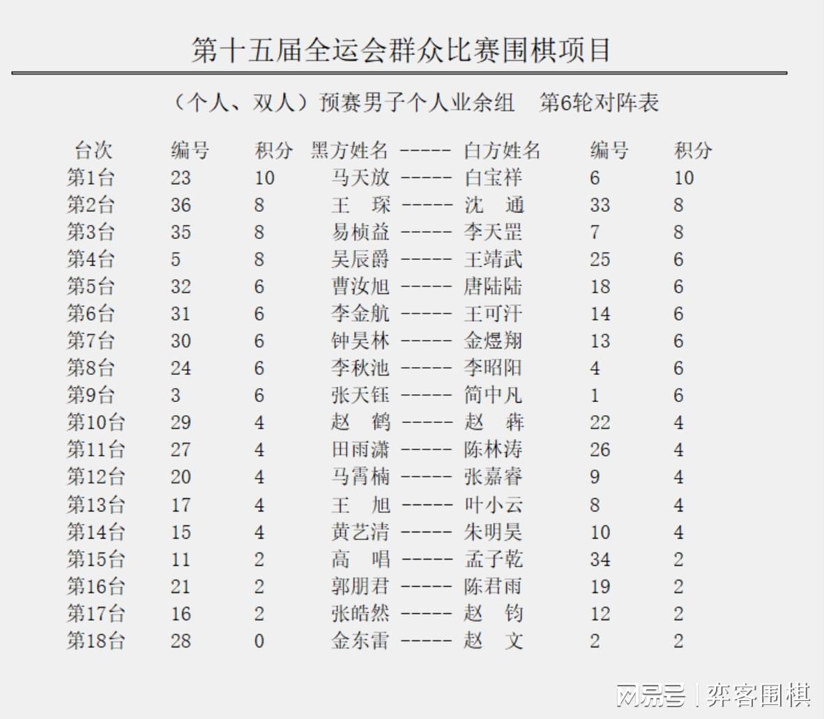6轮 柯洁负严在明,李钦诚胜芈昱廷,时越负王星昊,范廷钰胜党毅飞