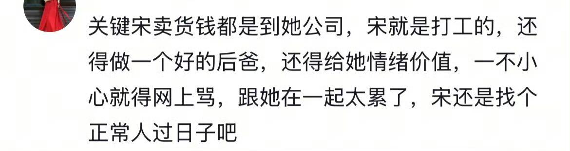 不过也有知情人力挺宋浩然:表示宋浩然这三年都是白打工,也做了一个很好的后爸,也给韩安冉提供了很好的情绪价值,但是稍有不慎就会在网上被骂,和韩安冉在一起实在是太累了,为此支持宋浩然找一个普通人生活。或许这也是宋浩然上岸之后的想法吧,现在钱有了,孩子有了,自己也有名气了,完全可以单飞。