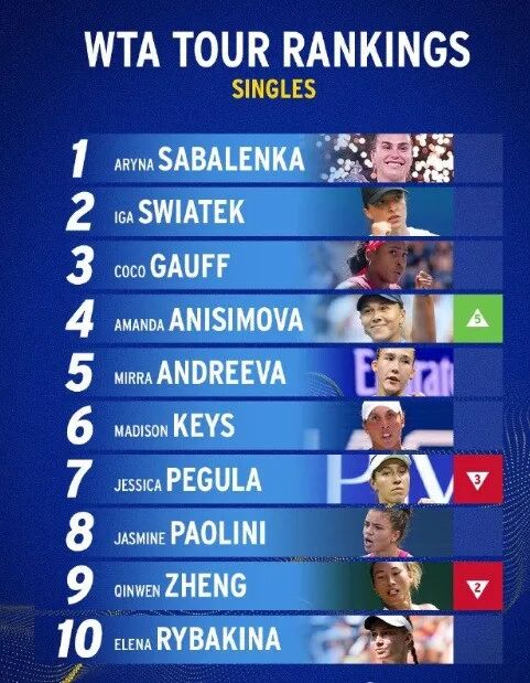 此前,随着美国网球公开赛落幕,2025赛季四大满贯赛事全部结束。WTA官方随后更新了最新一期世界排名,白俄罗斯名将萨巴伦卡凭借美网冠军的出色表现,以11,225分的绝对优势继续领跑积分榜。值得注意的是,中国选手郑钦文因伤缺席美网,排名下滑2位至第九,积分(4,003分)与第八位的保利尼(4,006分)仅差3分,未来仍有望重返前八。