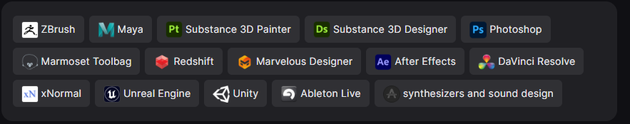 喜欢设计、雕刻、建模、纹理化3D资产,还具有动画、绑定、渲染方面的经验。
