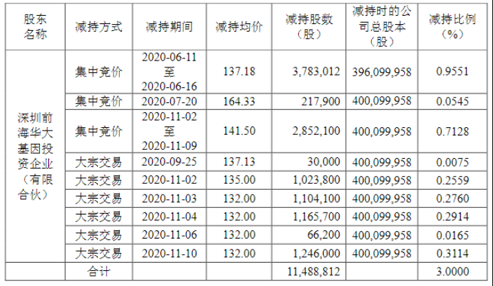 据公开资料,生华投资成立于2014年,原称"深圳前海华大基因投资企业(有限合伙)",最初持有华大基因6691.52万股,占总股本的18.59%。自2018年11月开始陆续减持,2019年及2020年为减持高峰期,彼时股票交易均价最高超160元/股。