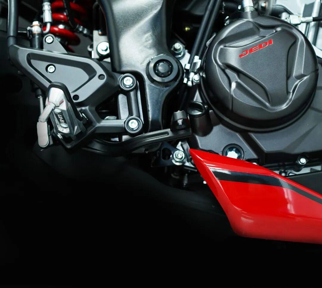 尤其是决定整车骑行操控的车架结构方面,杰迪NK333更是直接采取对标公升级街车的欧翼式铝合金后平叉。