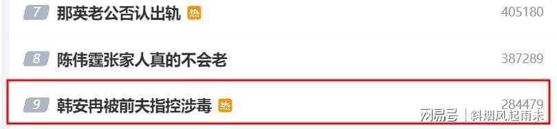 也因此,很快,“韩安冉被前夫指控涉毒”的词条登上了热搜。