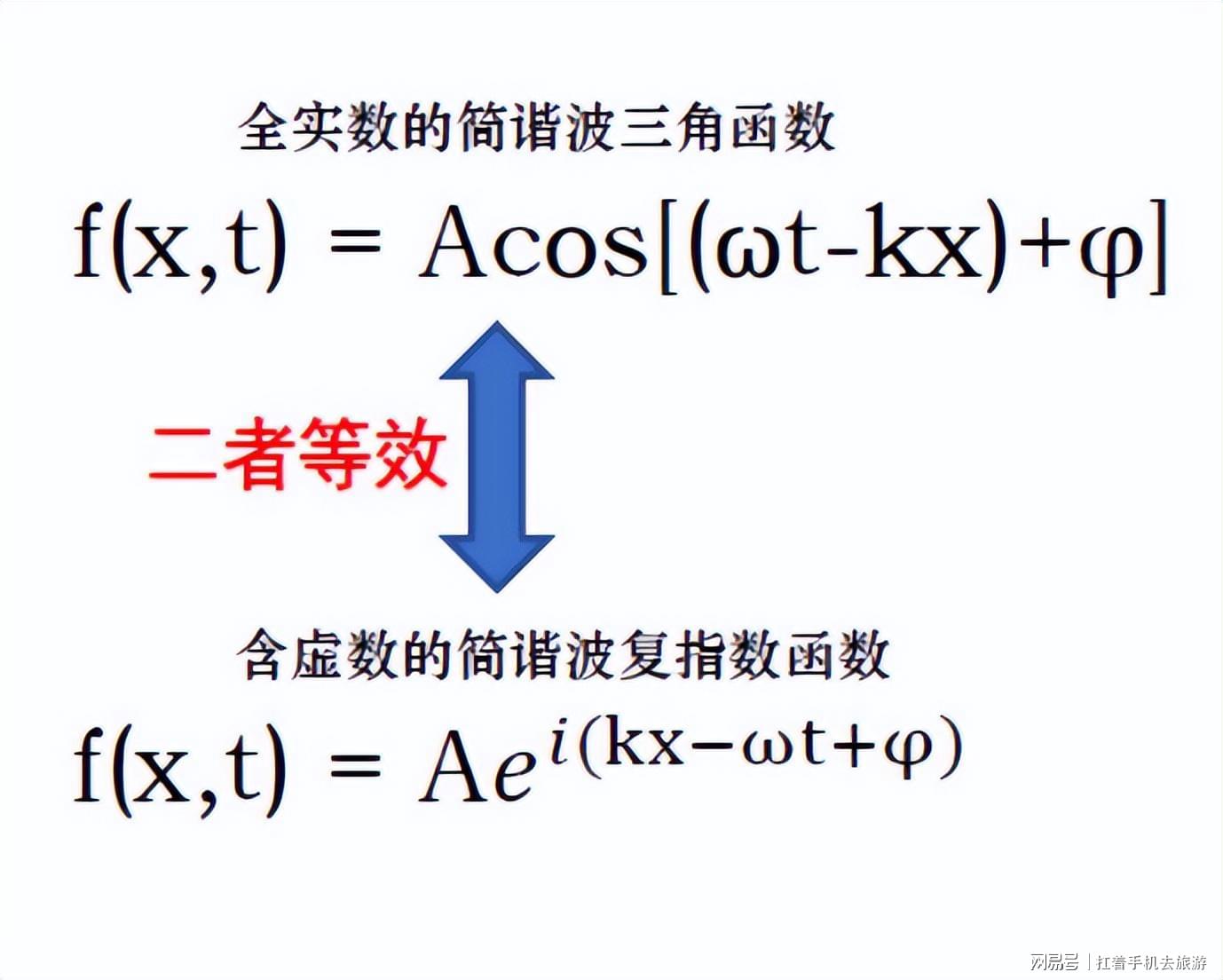 进入物理部分之前总结一下,量子力学中的简谐波函数,带虚数的复指数形式,等同于三角函数形式(见图12):
