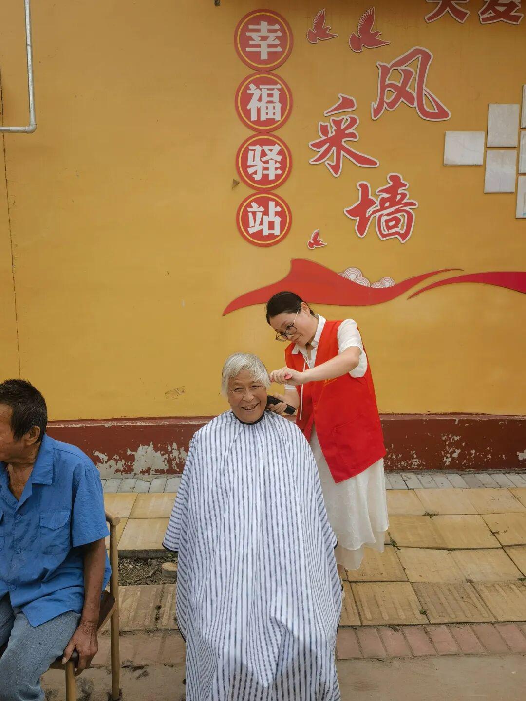 志愿者理发师身着专业服装,提前布置好场地,摆放好桌椅等工具。他们仔细倾听每位老人的需求,一边熟练地修剪头发,一边与老人们拉家常、聊生活状况。村两委干部也做起了义务工,帮着收拾剪落地上的头发,搀扶行动不便的老人摆好坐姿,等待剪发,现场气氛温馨融洽。老人看着自己的新发型,脸上露出了满意的笑容,纷纷夸赞志愿者“手艺好”,志愿活动“搞得好”,是实实在在为老百姓服务。