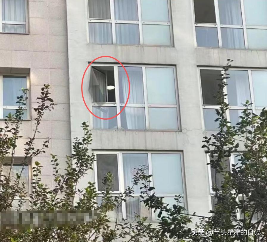 现场的照片已经流出,从照片上看这扇窗户确实遭到了破坏,窗纱和窗框整片脱离,距离地面也有十几米的高度。