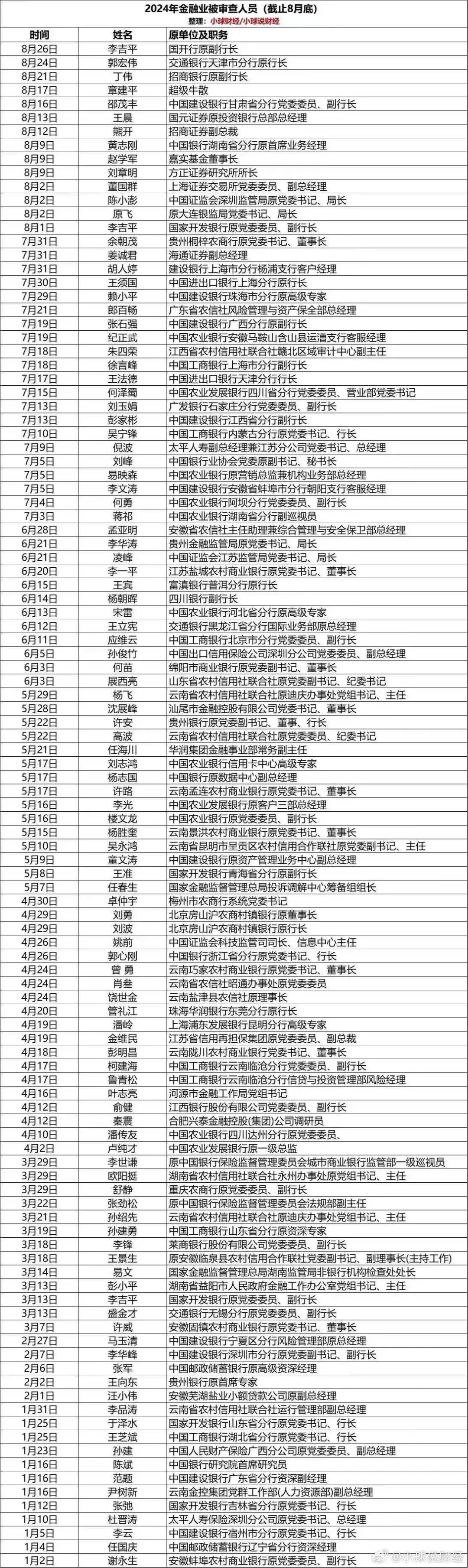 金融界,这种事情多了去了,易会满之前的那个证监会主席叫刘士余,后面主动投案留党察看;刘士余之前的那个证监会主席叫肖钢,也在任内提前被免。看看下面这份金融业被调查名单,就明白这一行水有多深了。