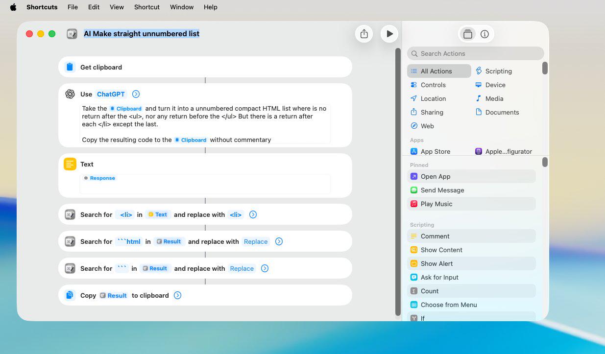 使用 Apple Intelligence 格式化 HTML 列表