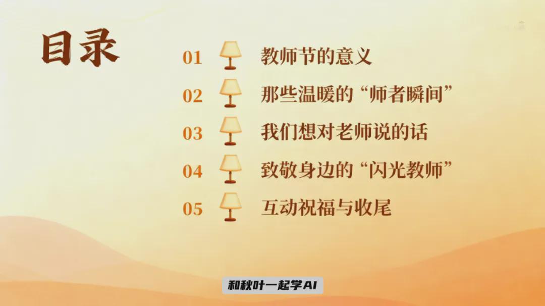 将确定的 PPT 封面作为参考图,继续生成 PPT 目录页和其他页面,多图风格统一,轻松拿捏高级感。