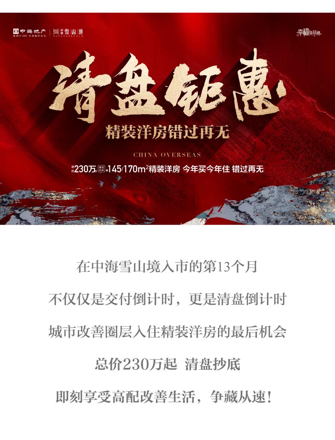 雪山境清盘倒计时丨总价300万起 约173㎡精装大平层仅余20席
