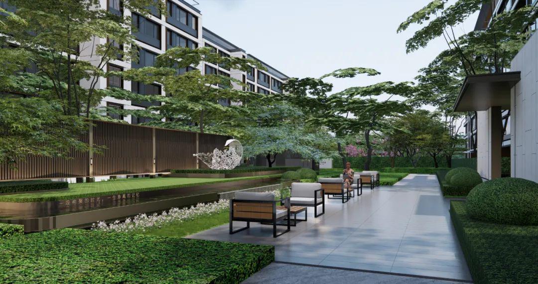 进园即入画,景观会客厅映于眼前,于喧嚣都市私藏一处闲适的谧境。雕塑水景、艺术草坪、观景吧台、休闲平台,巧妙融合其中,闲下来了,便投入园林的怀抱。与邻里同坐于户外会客厅,共赏叠水之景。