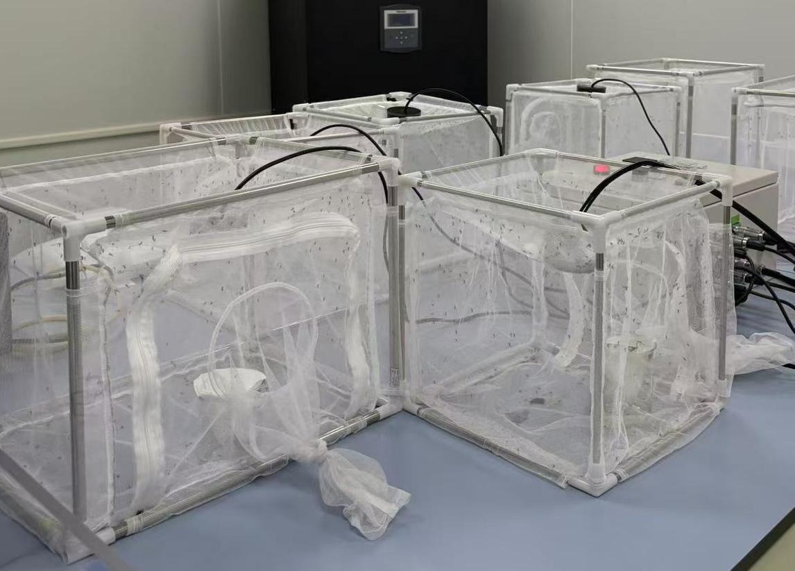 为确保研究结论的准确性,保障实验所用蚊虫的纯种性与生物敏感性,必扑从中国疾病预防控制中心直接引进蚊种,并在严格控制的隔离环境中进行繁育与维持,全程无外界交叉接触,从而最大限度地保证了实验结果的可靠性与科学性。“蚊子的繁殖很快,在温度、湿度适宜的条件下,15秒内就可以在空中完成交配。”实验室科研人员介绍,此后,研究团队分别在北京、青岛、石家庄等不同气候特征的城市设立室外试验点,通过持续监测气温、湿度变化与蚊虫叮咬频率及其体内病原载量之间的关联,综合分析表明:今年初秋时节的温湿度条件正处于蚊虫繁殖的高峰期。