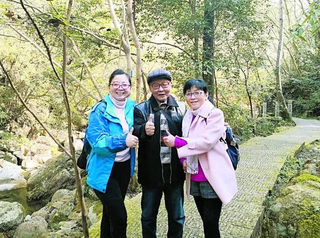 江孝明(中)与大女儿江虹(右一)、小女儿江一新(左一)合影