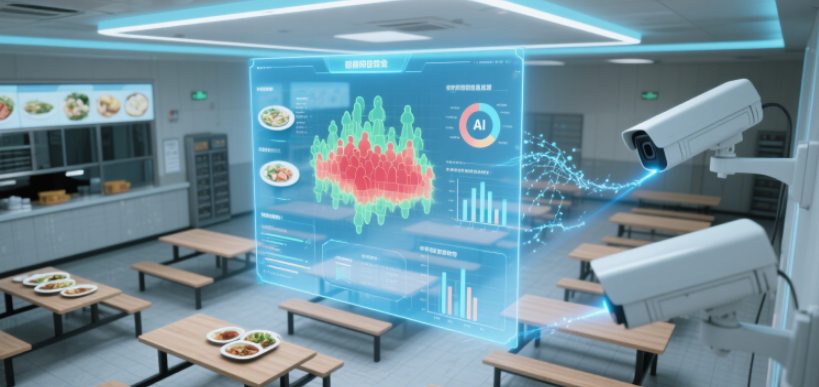 学校智慧食安模式以智能视觉为核心,实现后厨操作全时域监管: