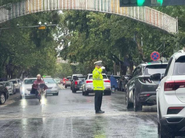 降雨导致交通压力显著增大,为确保辖区道路畅通有序,交警部门及时启动应急预案,增派警力下沉一线。在各主要路口、易积水路段,民警辅警们身着荧光雨衣,冒雨指挥交通,引导车辆有序通行。他们穿梭于车流之中,提醒驾驶员注意保持车距、减速慢行。针对上下学交通易堵路段,执勤交警加强巡逻频次和疏导力度,确保送下学车辆顺利通行。