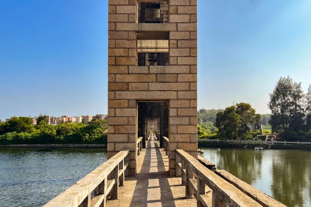 这座位于惠安县湖埭头村和曲江村之间的宏伟建筑,全长1036.28米,上下游段636米,中间跨溪部分长达400米,共由40跨组成,每跨精确至10米,最高处达20米,砌石总量达9000立方米。作为山美水库惠东南灌区的关键枢纽,其设计流量达5.5立方米/秒(折合每日47.5万方),主要负责引晋江及山美水库之水,灌溉涂寨、东岭、东桥、净峰四个乡镇共计6.9万亩农田,堪称惠东地区的农业命脉。