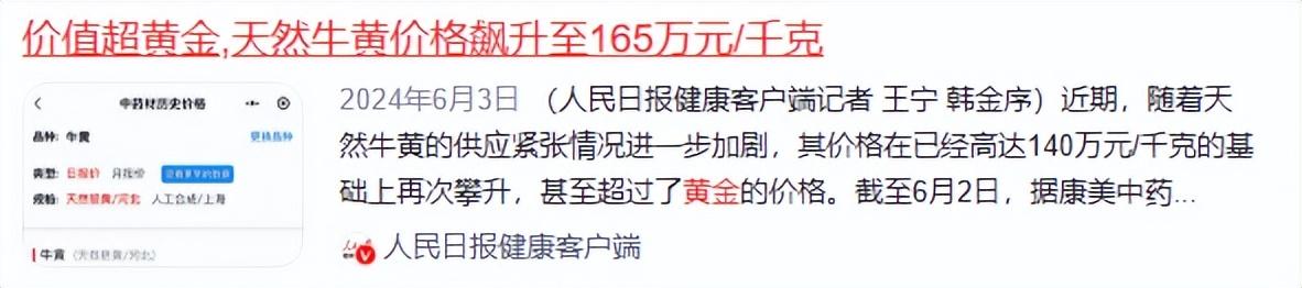 但我们必须清醒认识到,无论是天然还是人工来源,牛黄的根本意义从来不在于投机牟利,而在于守护人类健康。