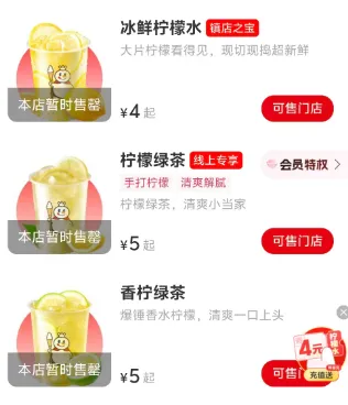 有苏州蜜雪冰城门店称,苏州多家门店柠檬缺货,该店还有柠檬库存可以做少杯柠檬水,但使用的是进口柠檬,口感或有些许差异。