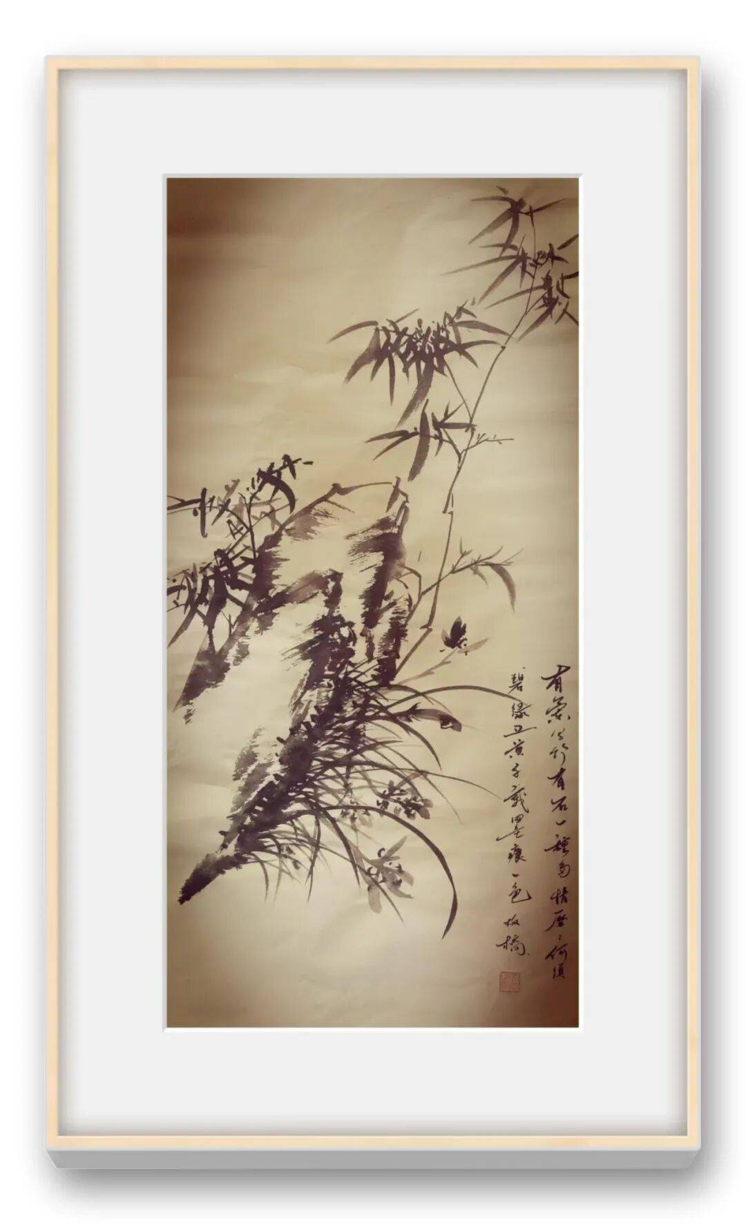 品张文雷先生《竹石兰三君图》,墨竹挺拔劲秀,竹叶疏密有致,以浓淡墨色展现出层次与生机;石之皴法苍劲,兰草清雅,三者相衬,气韵和谐。笔墨简练却意趣盎然,将竹之高洁、石之坚毅、兰之清幽的品格融于一纸,题款与钤印也相得益彰,增添了文人画的书卷气。单竿竹修长挺秀,竹叶姿态灵动,似有清风拂过。题诗书法洒脱,与墨竹笔墨呼应,诗中“虚心劲节耐霜寒”等句,更借竹抒怀,体现出对竹之高洁品性的赞颂。整幅画笔墨相生,意境清逸,既具绘画的视觉美感,又含诗词书法的文化意蕴,是一幅富有精神内涵的文人墨竹佳作。