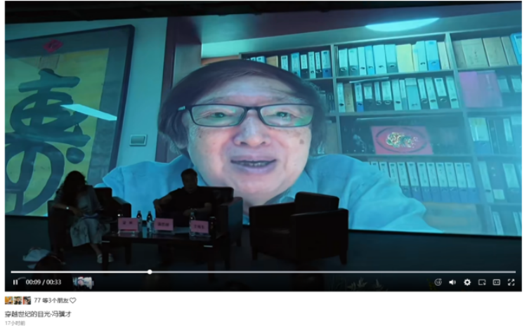 主持人王海东留意到视频中的一个细节:“冯骥才先生书房的书架上没有书,而是一个一个的文件盒。这通常意味着他要做很多实际性的工作,而不仅仅是读书。”